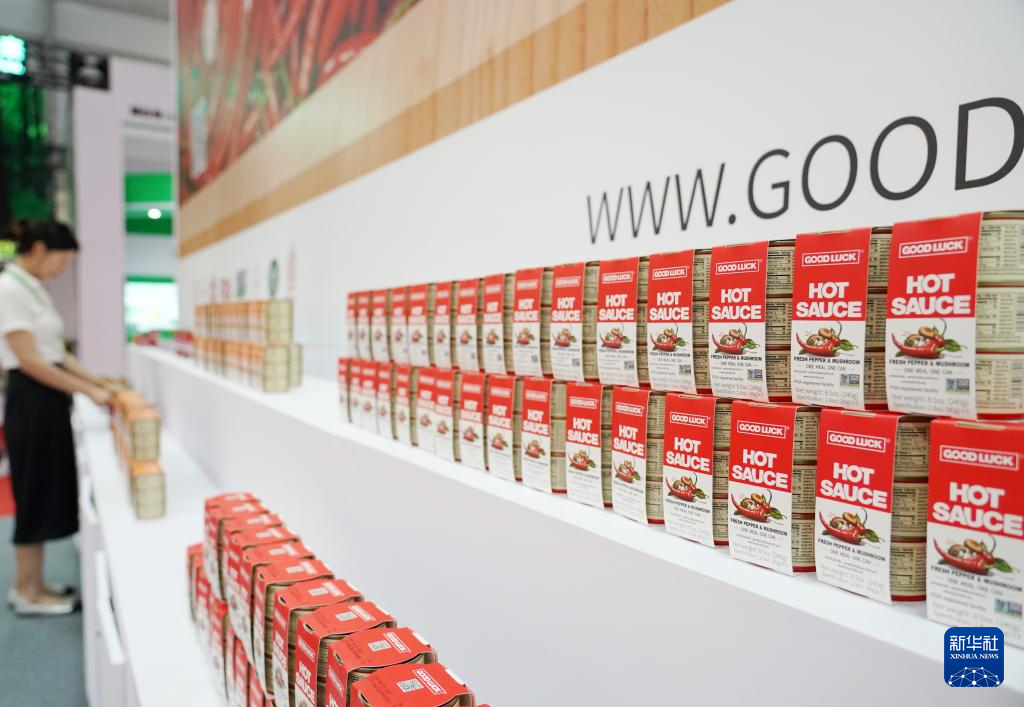 这是7月18日在绿色农业链展区拍摄的一款出口美国的辣椒酱。