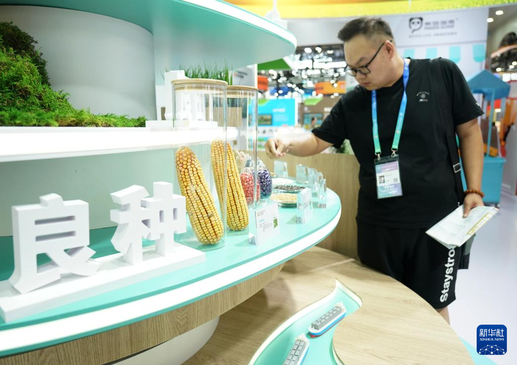 7月18日,参会者在绿色农业链展区参观展出的种子。