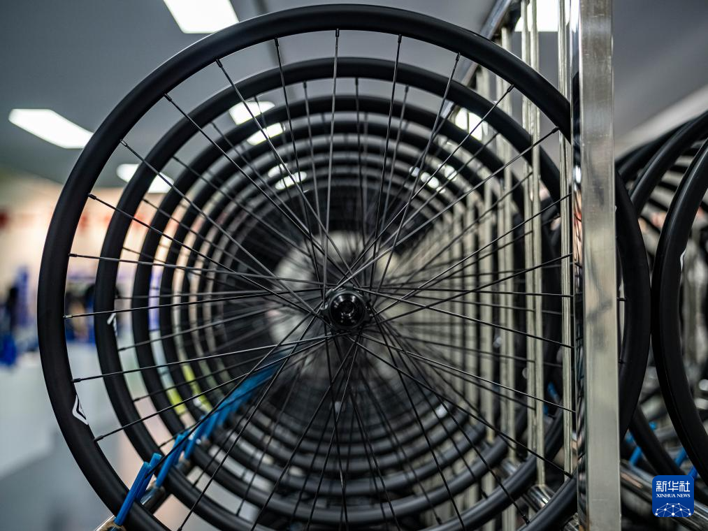 7月16日,在吉林化纤集团复材体育休闲装备产业园拍摄的碳纤维一体成型自行车车轮。