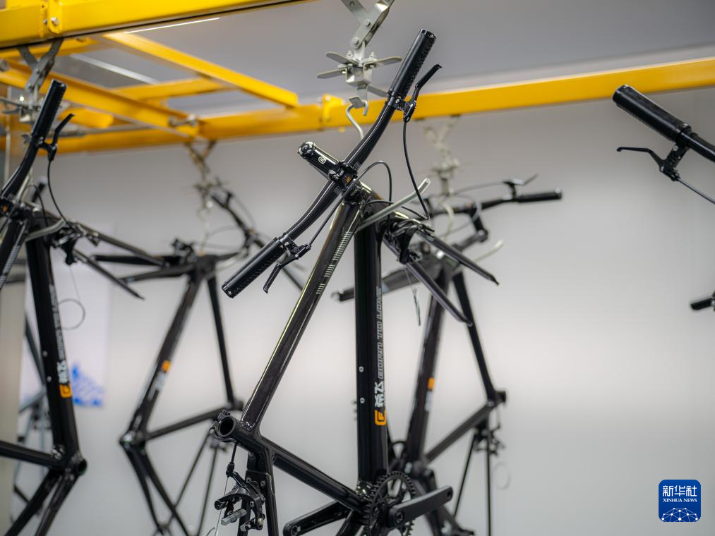 7月16日,在吉林化纤集团复材体育休闲装备产业园拍摄的碳纤维自行车车架。