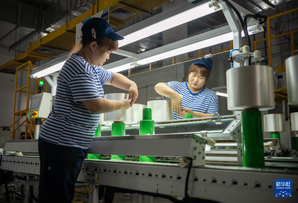 7月16日,在吉林化纤集团复材体育休闲装备产业园,工人组装碳纤维自行车车架。