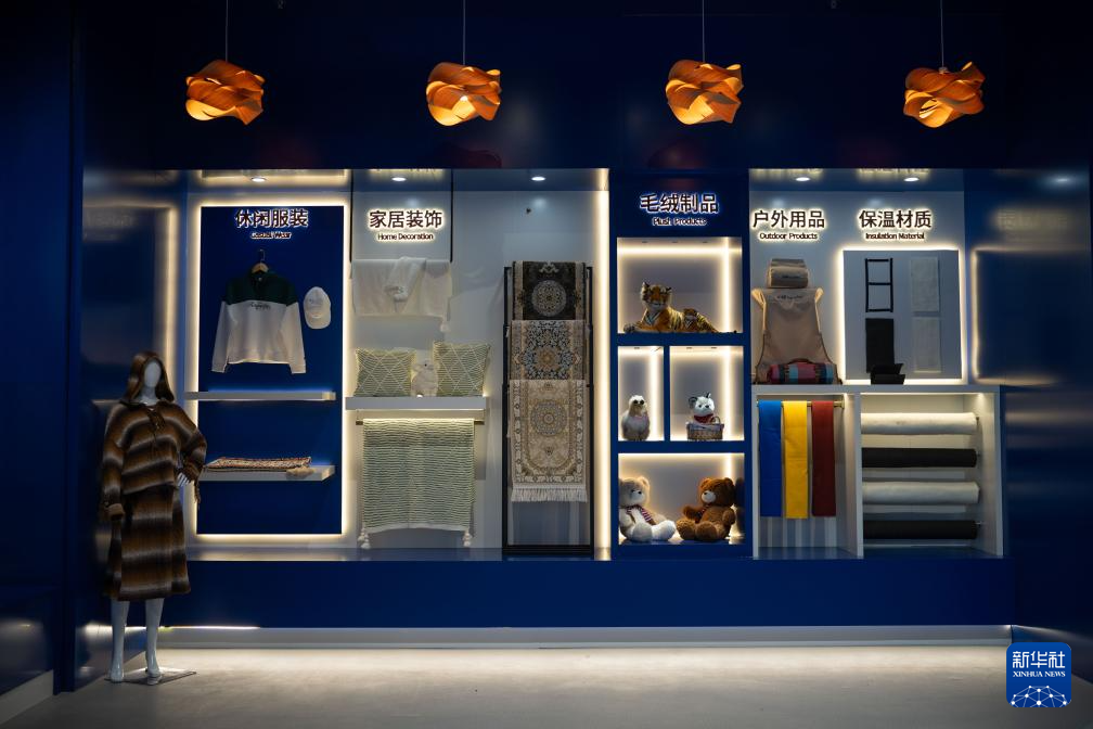 7月16日在吉林化纤集团展厅拍摄的化纤工艺家居用品。