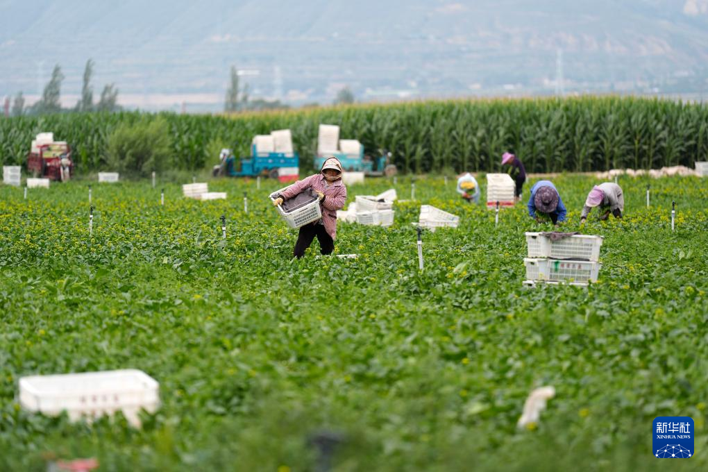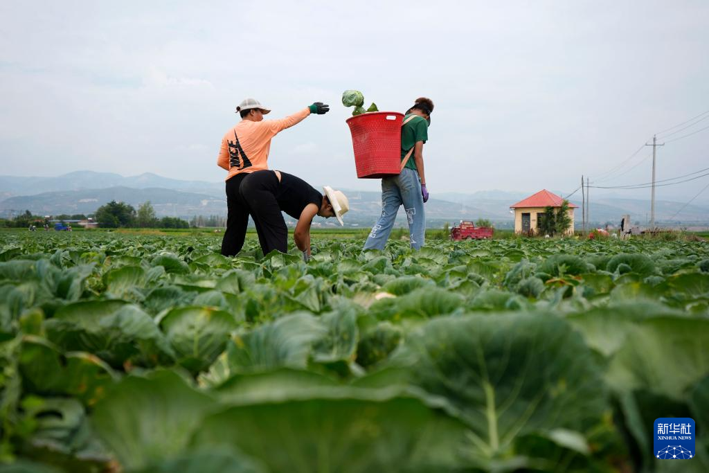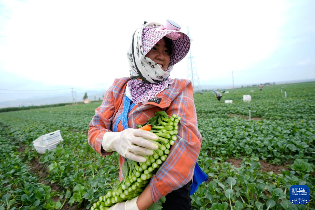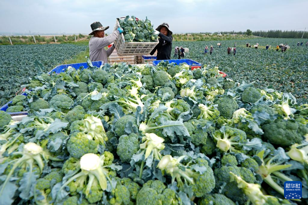 盛夏时节,宁夏固原市万亩冷凉蔬菜迎来丰收季。农户忙碌在田间地头,采摘西兰花、菜心、甘蓝等蔬菜。