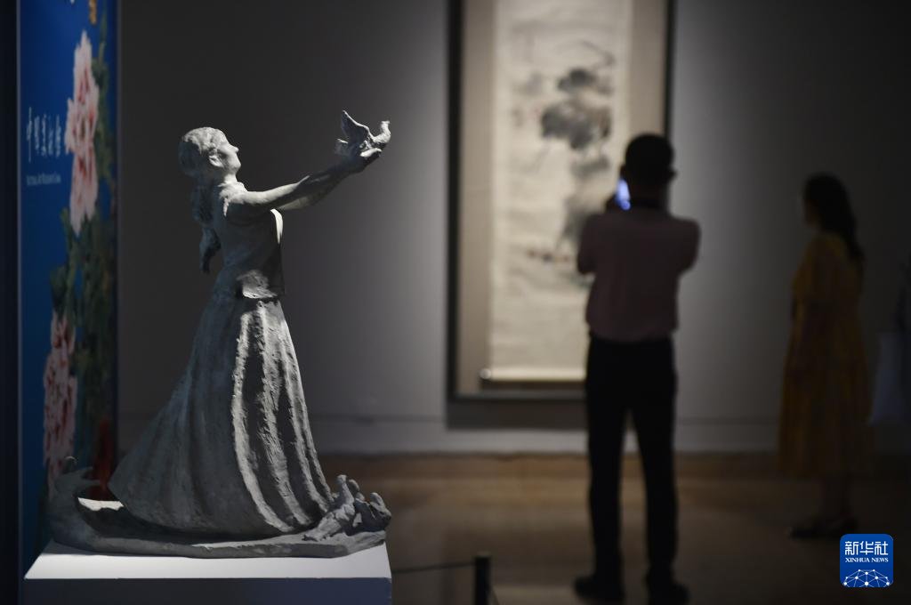 这是7月19日在中国美术馆拍摄的雕塑作品《和平》。