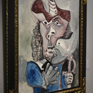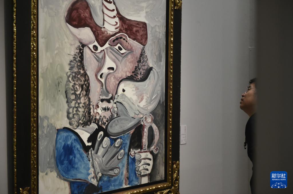 7月19日,参观者在中国美术馆参观展出的毕加索作品《带鸟的步兵》。