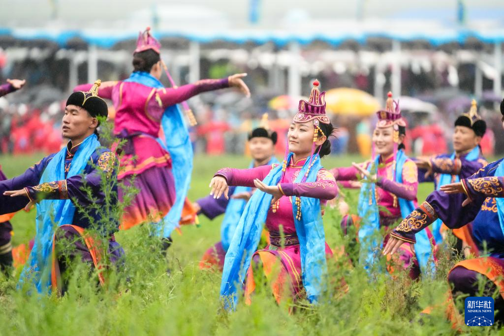 这是7月19日在锡林郭勒那达慕风情园拍摄的那达慕开幕式文艺表演。