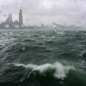7月20日拍摄的风雨中的香港维多利亚港。