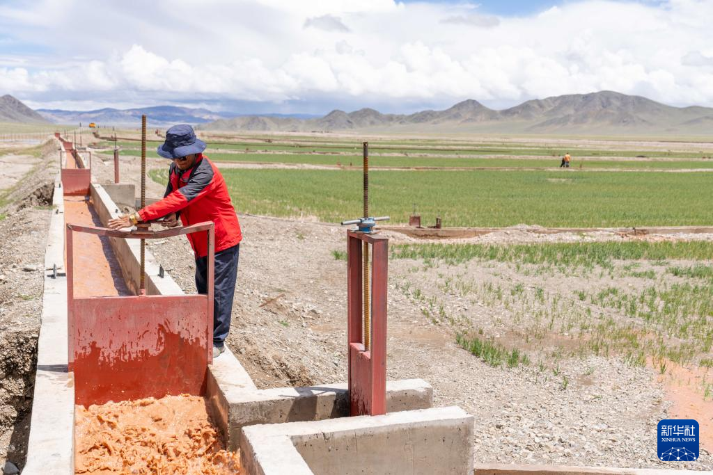 7月20日,西藏阿里地区革吉县文布当桑乡夏玛村村民达多在人工种草基地工作。