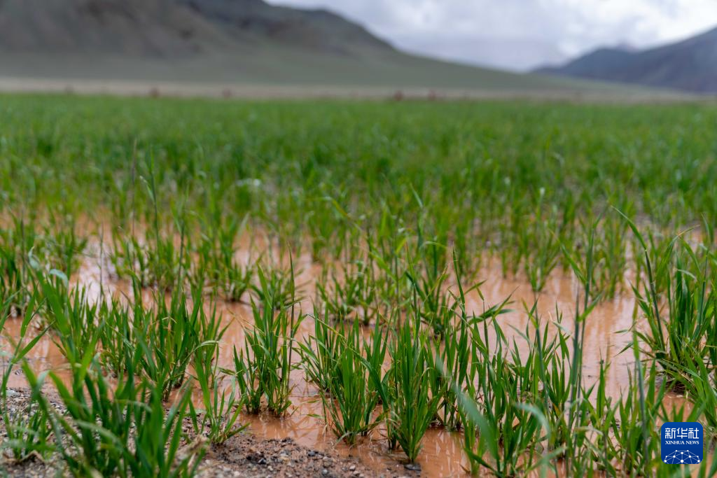 这是7月20日在西藏阿里地区革吉县文布当桑乡拍摄的人工种草基地。