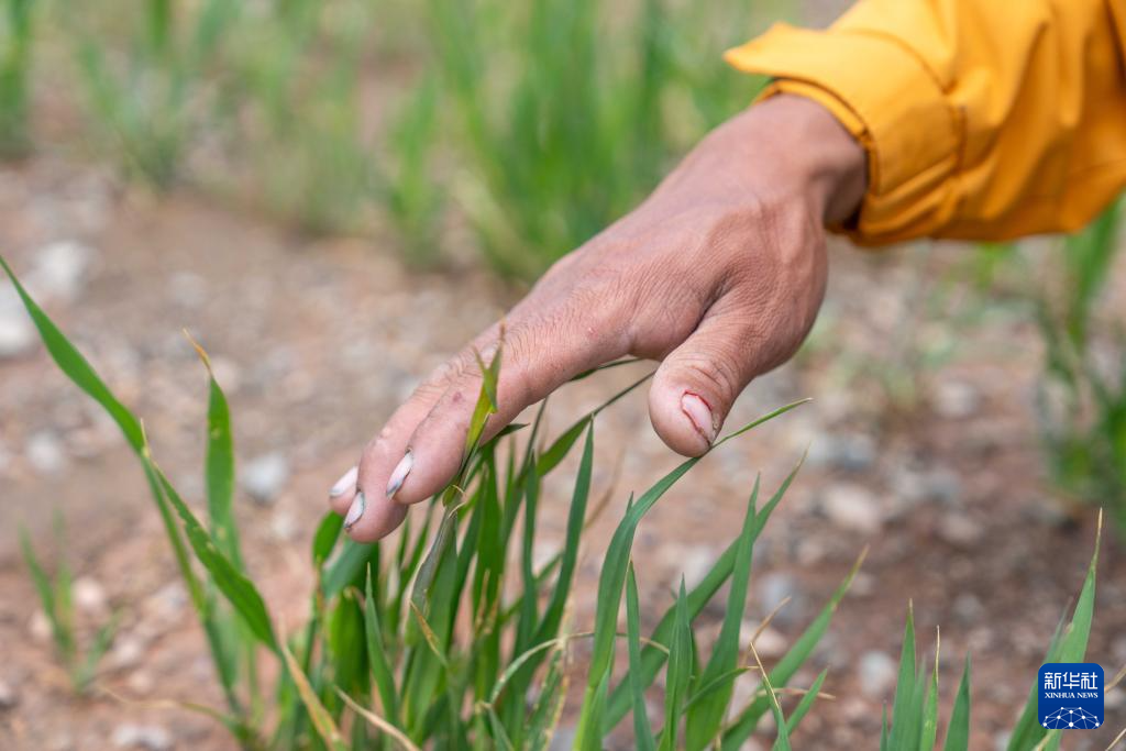 7月20日,村民在看草的长势。