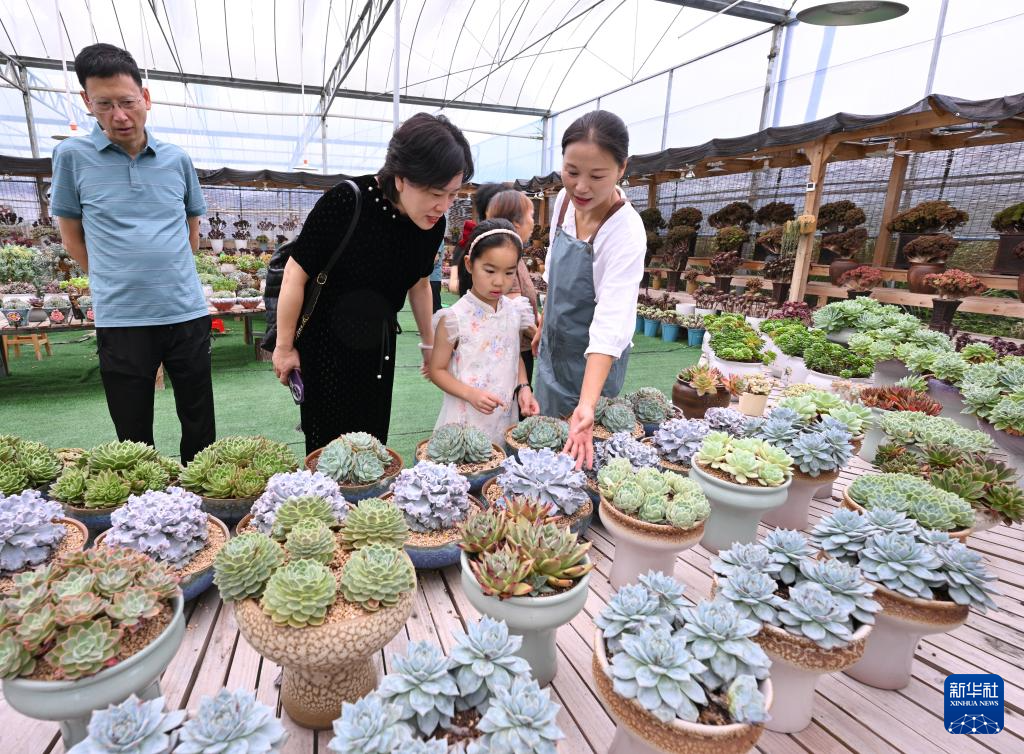 时值暑期旅游旺季,走进福建周宁静宇园艺有限公司多肉种植大棚,一盆盆形态各异的多肉植物憨态可掬,公司负责人刘林正忙着接待一批又一批前来参观、研学的客人。