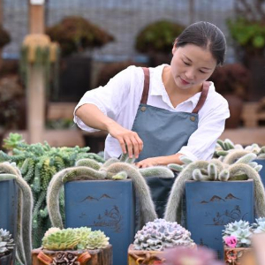 十多年前,在周宁县做建材生意的刘林偶然购入第一盆多肉植物,从此与多肉结缘。从客厅到阳台,从几盆到两千多盆,刘林家里逐渐成为多肉王国。2020年,刘林将多肉拍成视频发到网上,好评如潮,她抱着试试看的态度将多肉摆到建材店门口售卖,第一天就卖出一千多元,尝到甜头的刘林随后租下300多平方米的空间开始专营多肉植物。