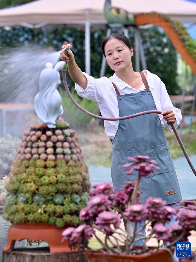 2023年,在周宁县花卉产业发展政策的扶持下,刘林租下浦源镇“花鲤小镇”花卉基地10多亩闲置大棚,成立公司专业从事多肉植物种植技术研发、育种、设计造型、参观研学等业务,种植的多肉植物多达200多个品种。近年来,在周宁县“美丽庭院+花卉”发展模式的引导下,刘林将自己的多肉盆栽推广到当地多个农家小院,带动更多乡亲参与到这项美丽的致富事业中来。“从一方阳台到满园希望,从一个人的爱好到一群人的路,我希望能带动更多乡亲将日子过得像多肉一样饱满、多彩。”刘林说。