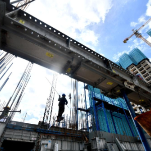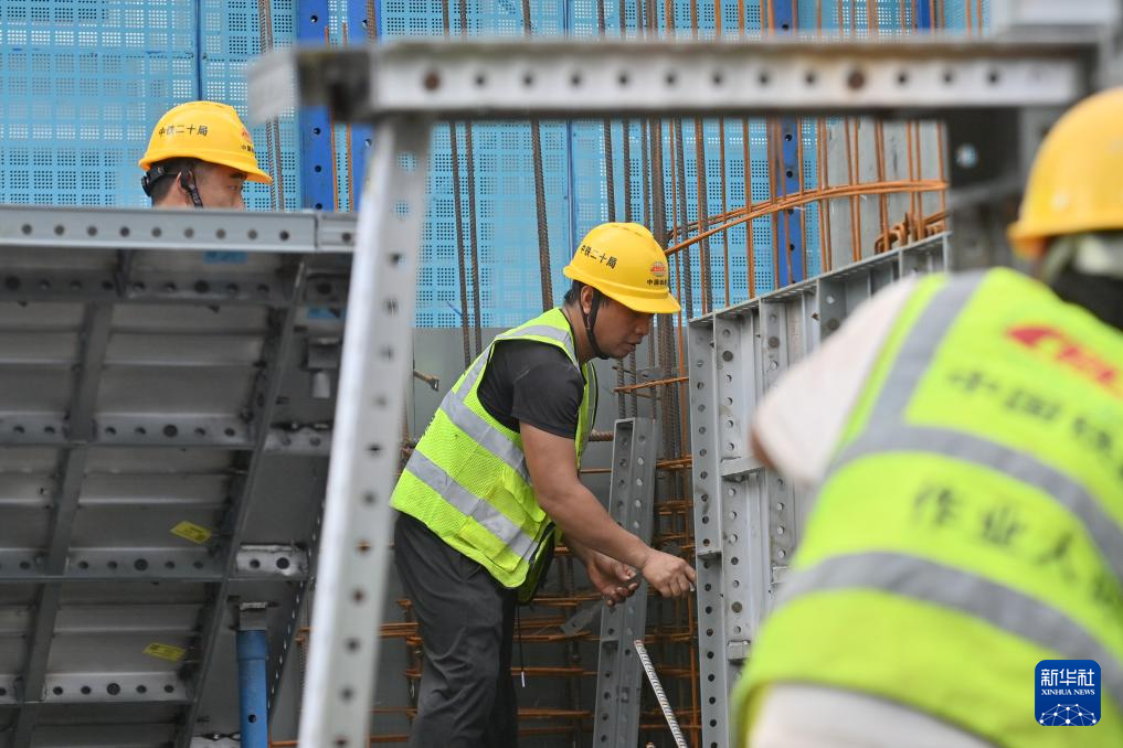 7月21日,中铁二十局工人在南宁市鸡村城中村改造项目建设现场施工作业。