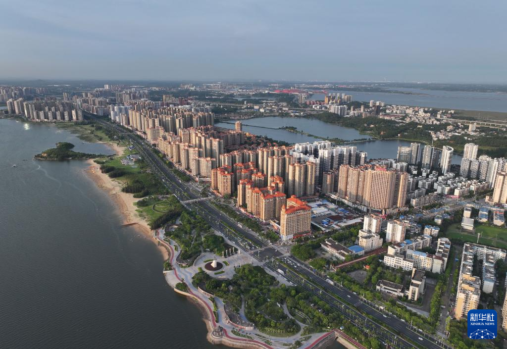 防城港市北部湾大道一处景观(7月6日摄,无人机照片)。