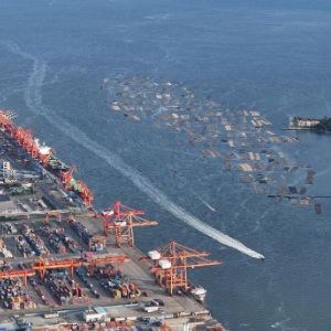 轮船在防城港码头海域行驶(7月6日摄,无人机照片)。