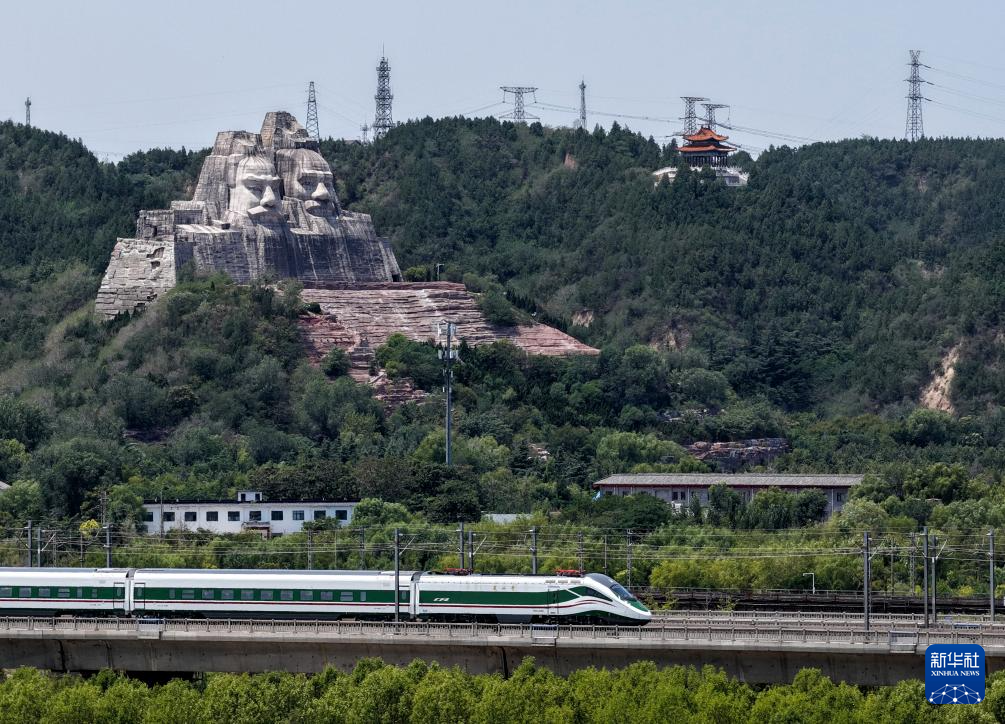这是7月17日拍摄的位于黄河郑州段河畔的炎黄二帝像(无人机照片)。