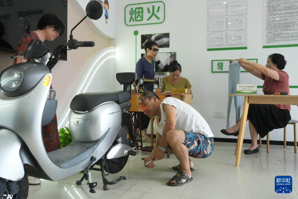 7月23日,在湖州市中心的狮子巷社区,居民在爱心驿站享受“小修小补”生活服务。