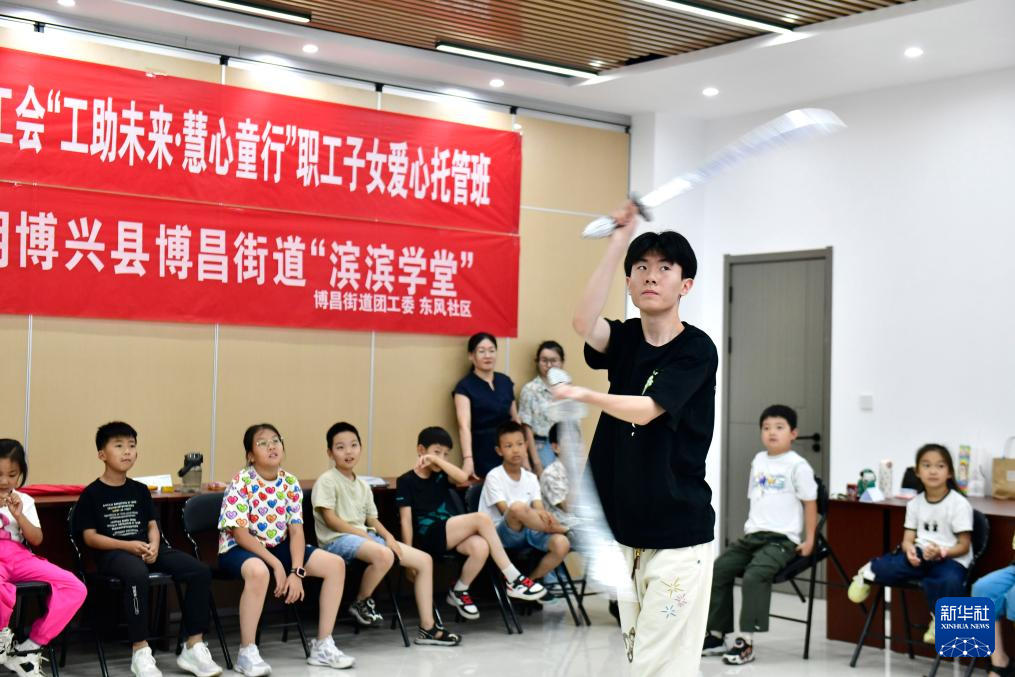 为丰富暑假儿童文化生活、山东省滨州市博兴县利用社区睦邻中心、新时代文明实践中心(站)等场所,招募返乡大学生、文化志愿者,打造“滨滨学堂”,开展形式多样的活动,让孩子们度过一个欢乐、充实的暑假。