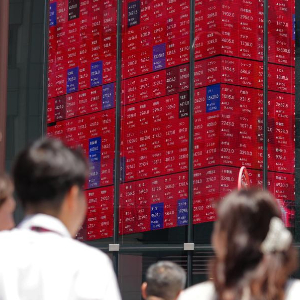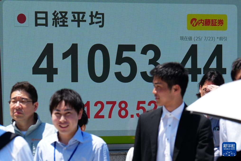 7月23日,行人经过位于日本东京的电子股指显示屏。