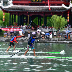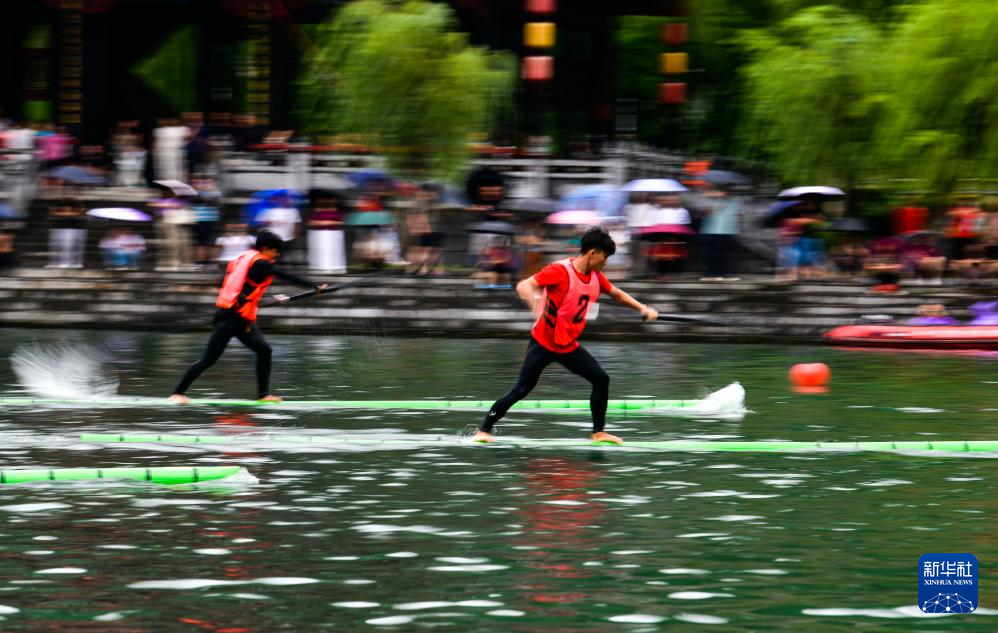 7月22日至23日,2025年民体杯全国独竹漂比赛在贵州省黔东南苗族侗族自治州镇远古城举行。来自浙江、湖北、广西、广东、贵州等省区的10支独竹漂代表队参加比赛。
