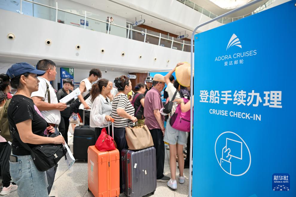 7月23日,旅客在天津国际邮轮母港办理登船手续。
