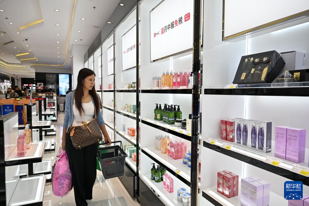 7月23日,旅客在天津国际邮轮母港的免税店内购物。