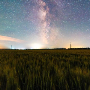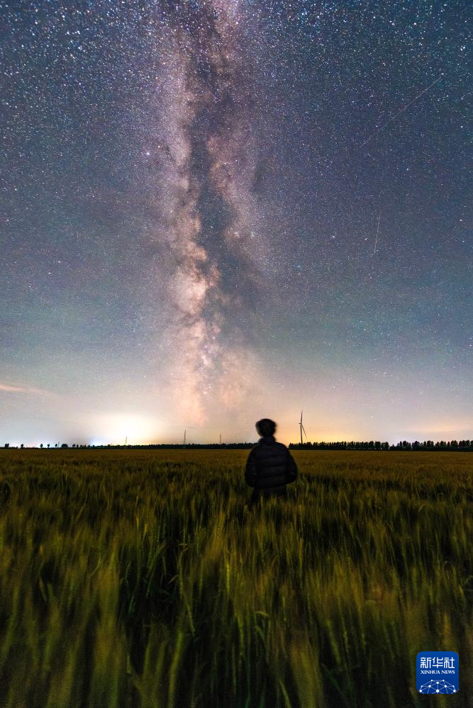 7月21日在黑龙江省富锦市长安镇一片麦田中拍摄的“银河垂立”景象。