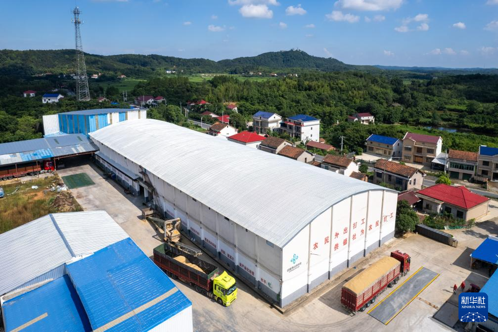 这是7月24日在常德市鼎城区双桥坪镇拍摄的一个水稻烘干工厂(无人机照片)。