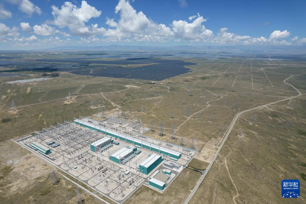 这是7月25日在青海省共和县拍摄的±800千伏特高压青南换流站(无人机照片)。