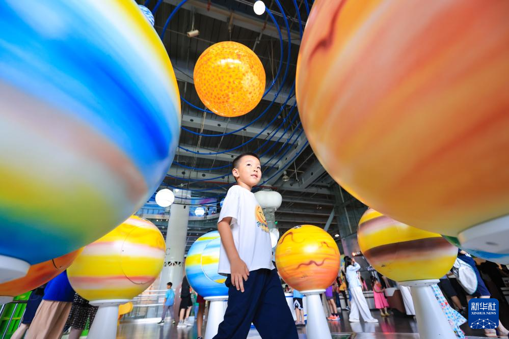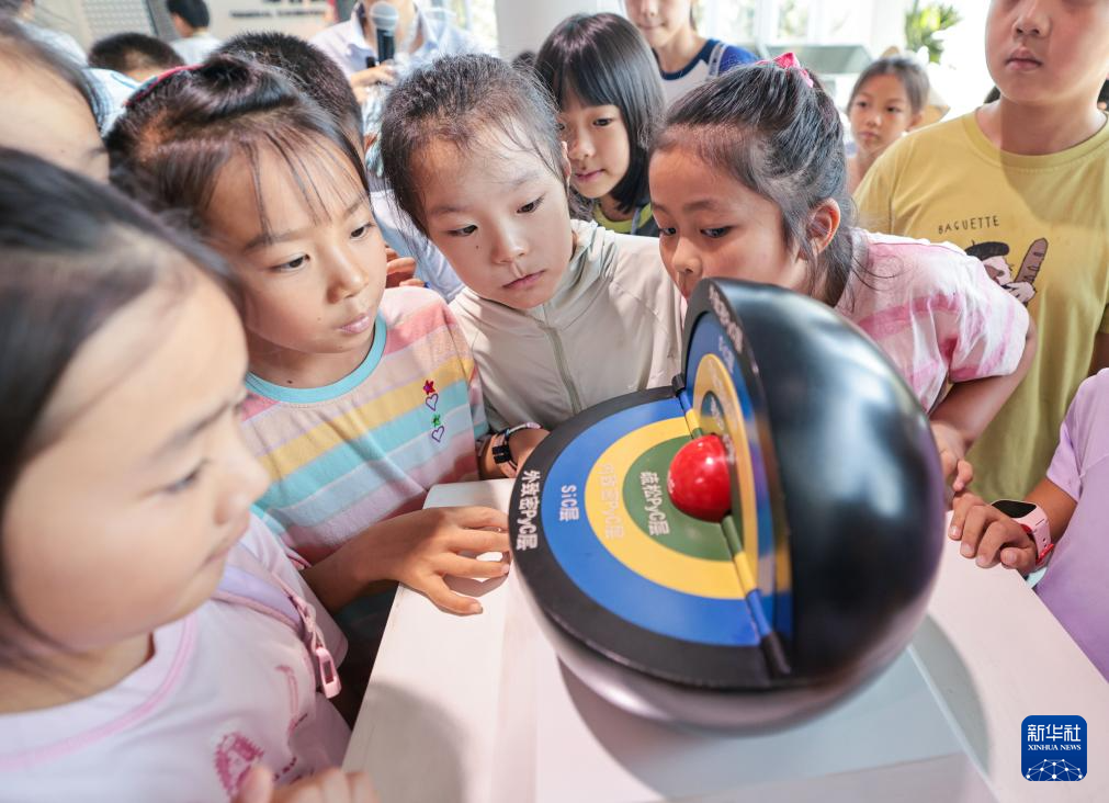 7月25日,孩子们在山东荣成华能石岛湾核电科技馆参观。