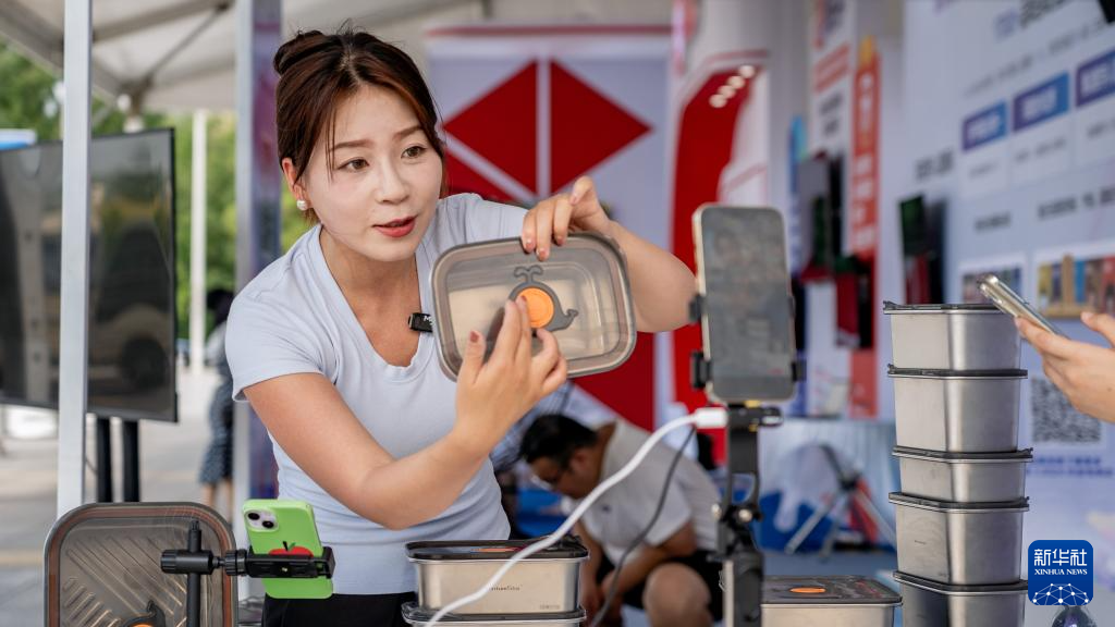 7月27日,一名主播在第五届中国新电商大会现场直播带货。