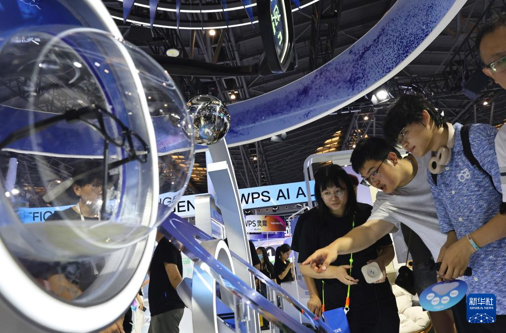 正在上海举行的2025世界人工智能大会展览现场,参观者与能分拣物品打扫房间的机器人、具备拍摄导航语音翻译功能的智能眼镜、AI艺术创作系统、基于AI大模型打造的驾驶座舱等众多AI科技前沿产品零距离互动,仿佛置身未来世界,感受科技之美。