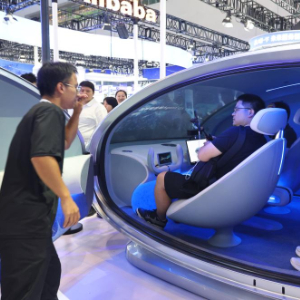 7月27日,参观者在体验乘坐一款基于阶跃星辰大模型打造的未来座舱。