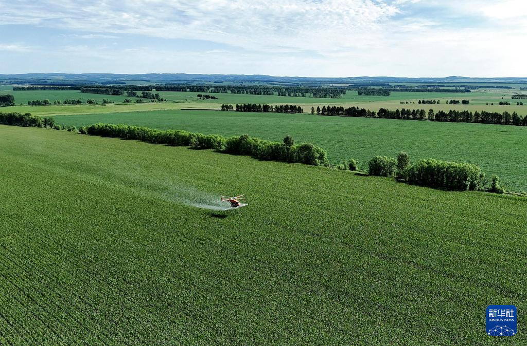 近日,黑龙江垦区北大荒集团各农业生产单位旱田航化作业陆续展开,为3000余万亩旱田作物生长“健身防病”,助力粮食增产丰收。