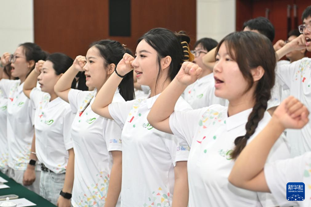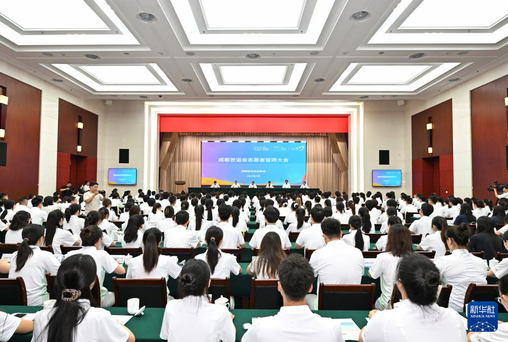 7月28日,志愿者们在成都世运会志愿者誓师大会上宣誓。