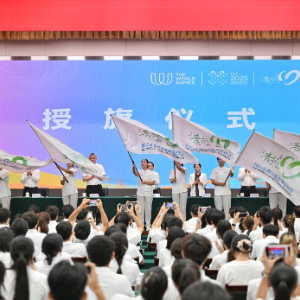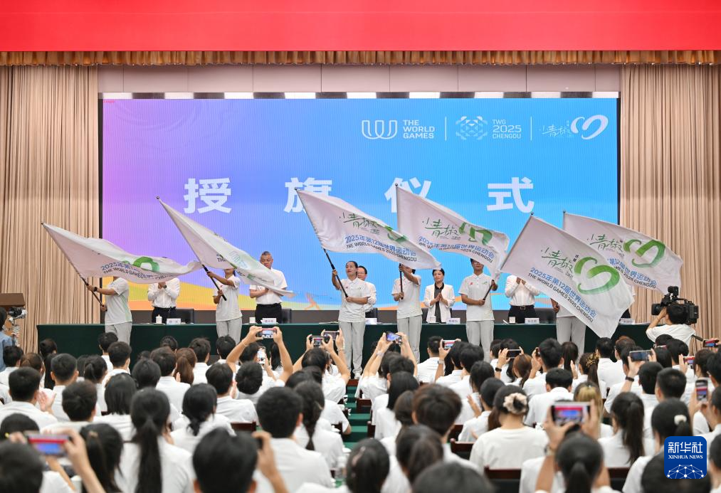 这是成都世运会志愿者誓师大会授旗仪式现场(7月28日摄)。