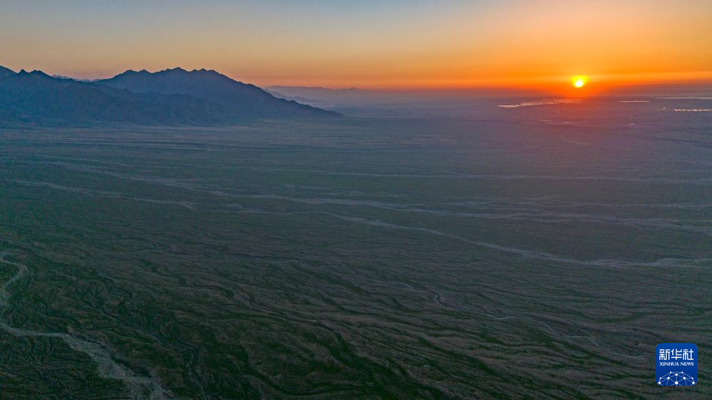 贺兰山下的戈壁滩草木茂盛(7月29日摄,无人机照片)。