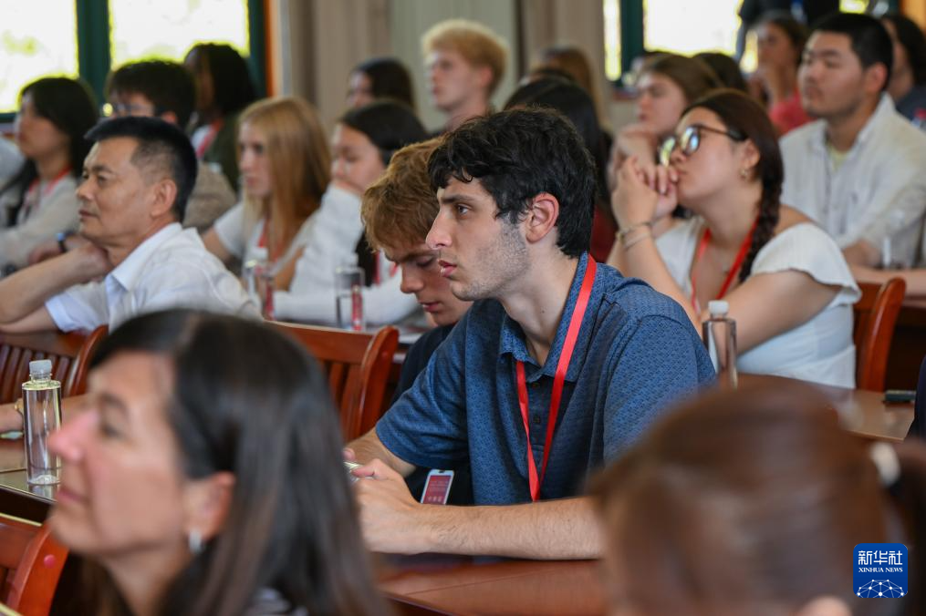 7月28日,在湖北省黄冈市红安县,美国飞虎队夏令营代表团成员观看纪录片《飞虎情缘》。