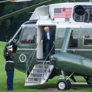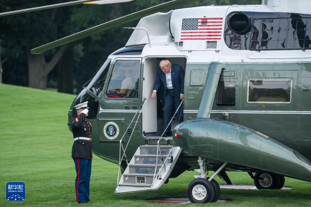 7月29日,美国总统特朗普乘直升机返回华盛顿白宫。