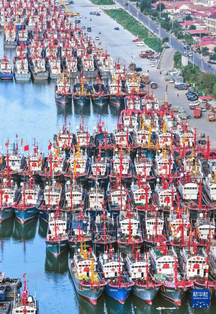 7月30日,渔船停泊在江苏省连云港市赣榆区青口中心渔港,躲避台风(无人机照片)。