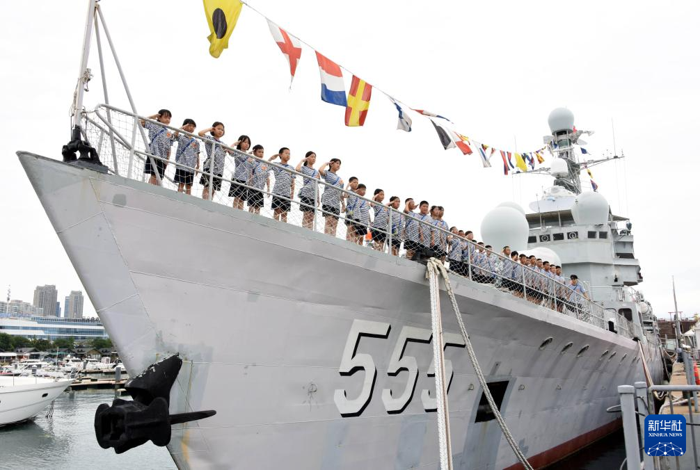 “八一”建军节来临之际,青岛海洋军事展览馆迎来了由全国各地中小学生组成的海军研学营。营员们走访爱国主义教育基地、参观退役军事装备、聆听英雄故事,在系列红色教育课程中学习军事基础知识、厚植国防情怀。