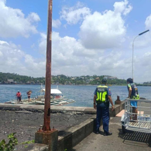 7月30日,菲律宾阿尔拜省黎牙实比市警方人员在海岸开展巡逻监控。