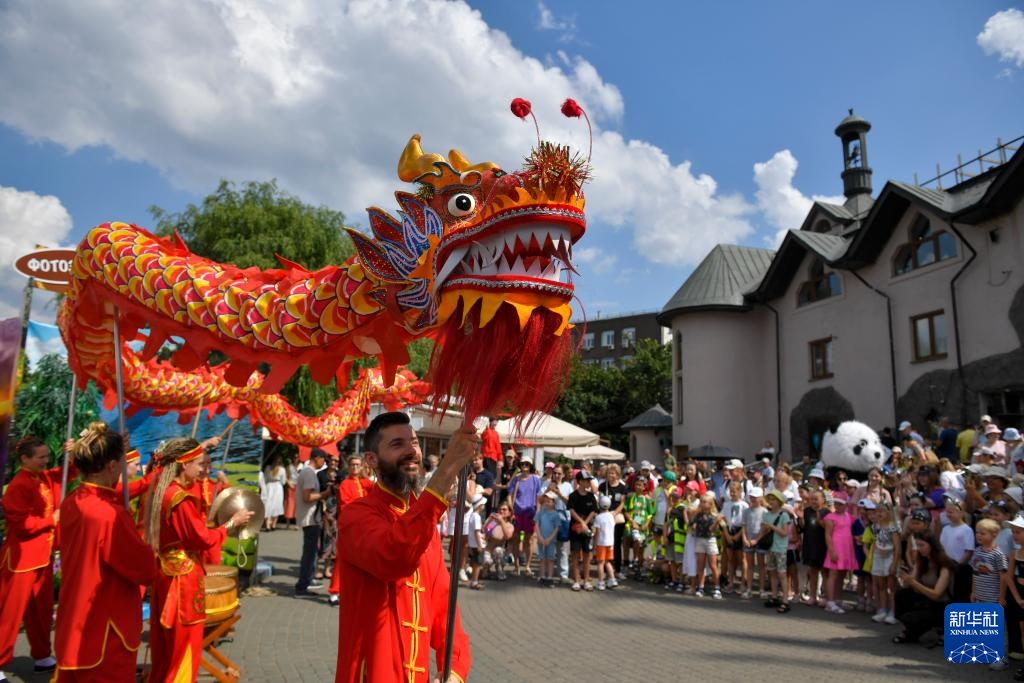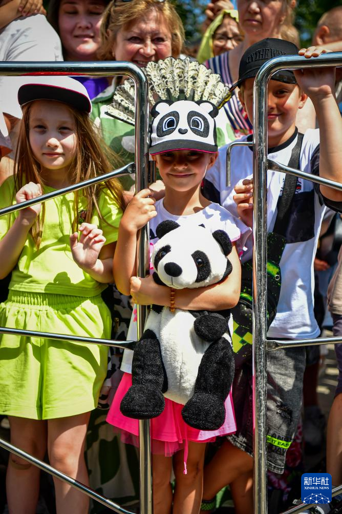 7月30日,在俄罗斯莫斯科动物园,人们参加“熊猫周”主题活动。