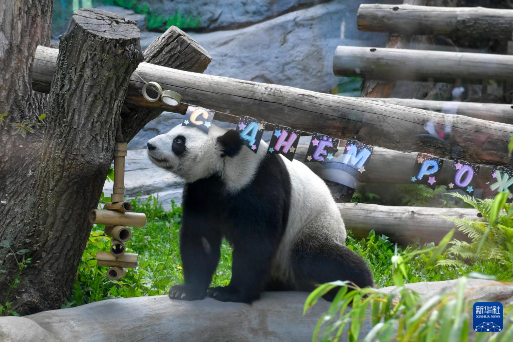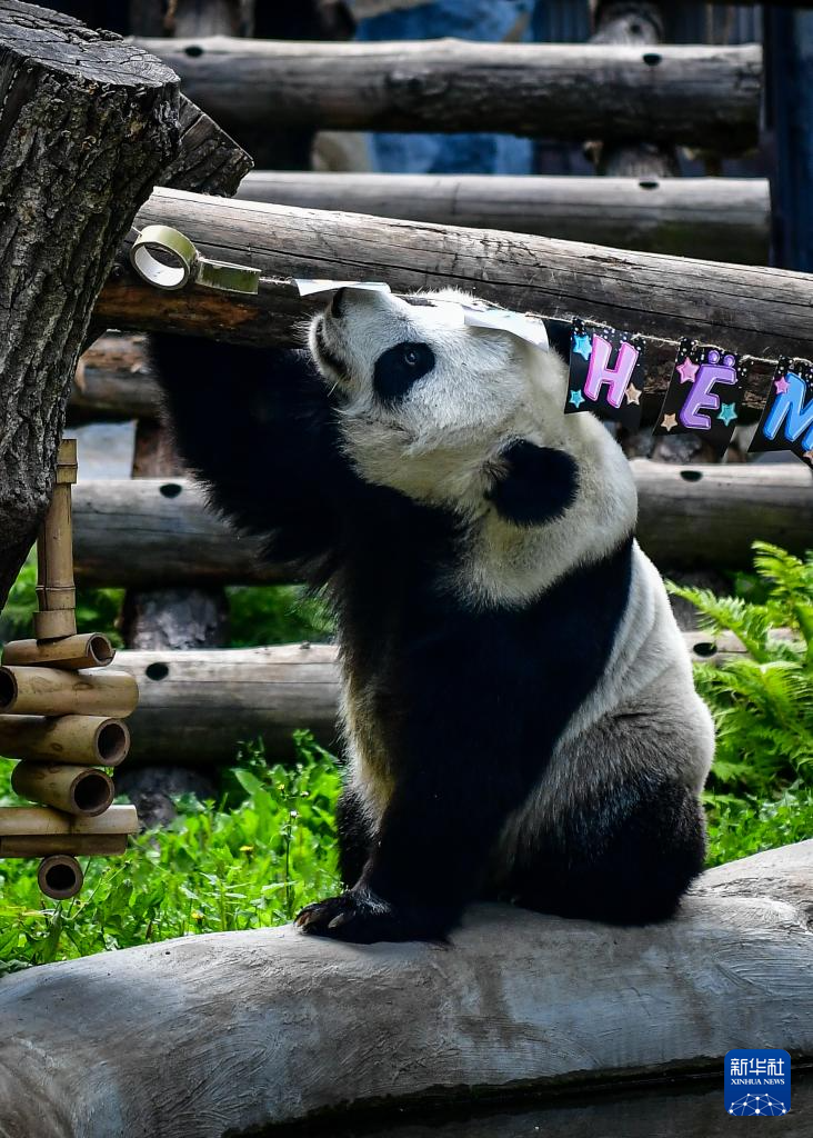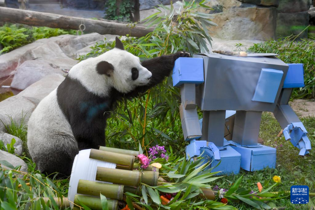 当日,莫斯科动物园举行活动,为旅俄大熊猫“丁丁”庆祝8岁生日。