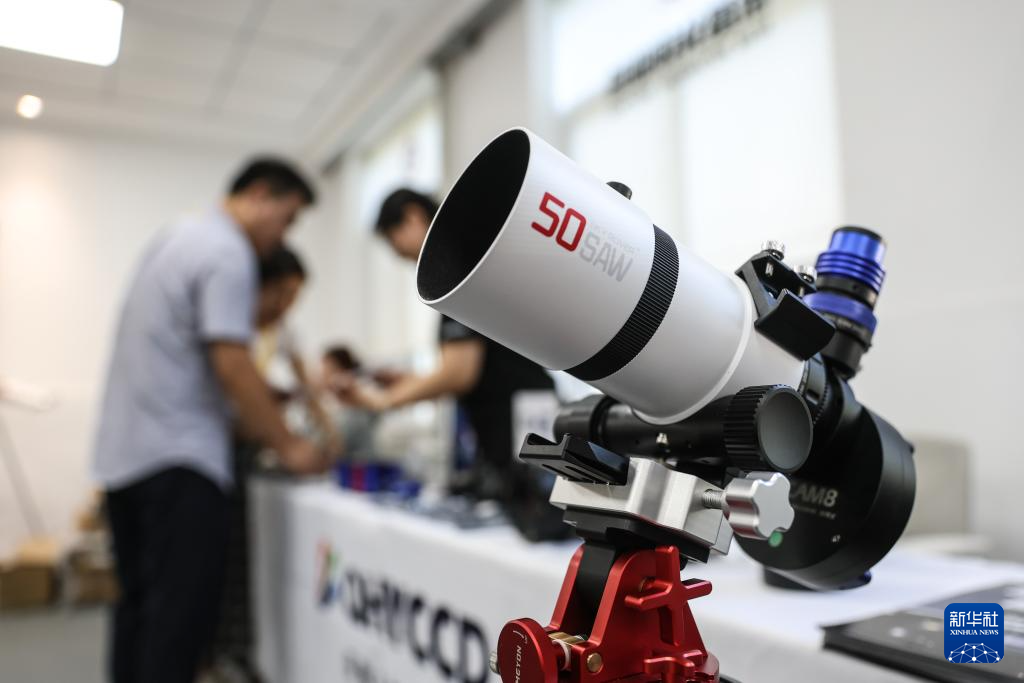 这是7月31日在首届全国天文公众科学大会活动现场拍摄的天文摄影器材。