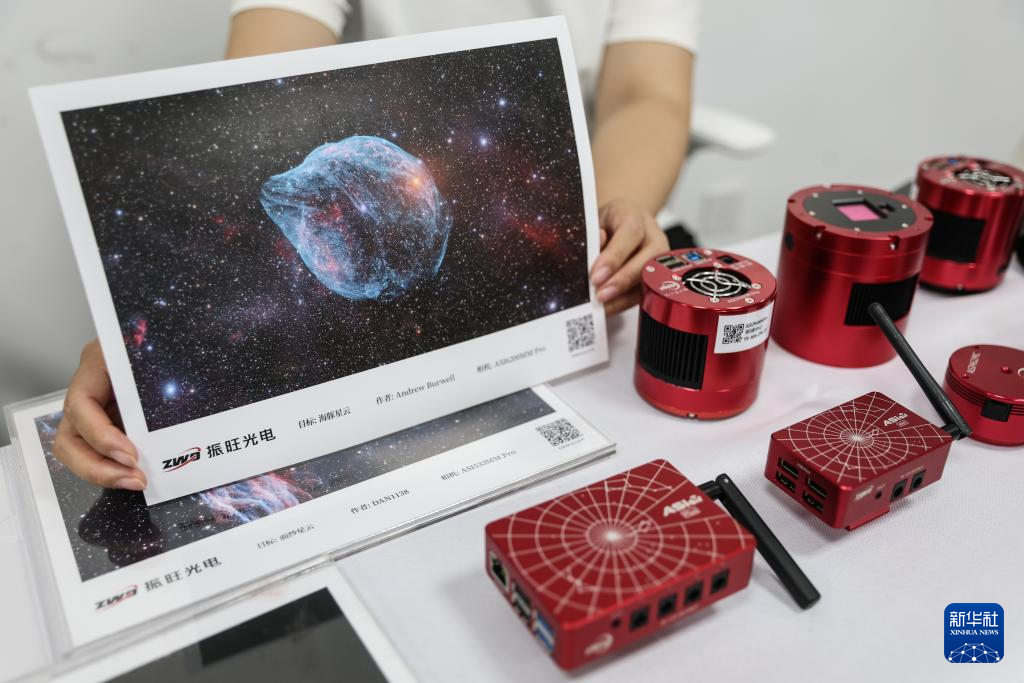 7月31日,工作人员在首届全国天文公众科学大会活动现场展示使用天文摄影机拍摄的照片。
