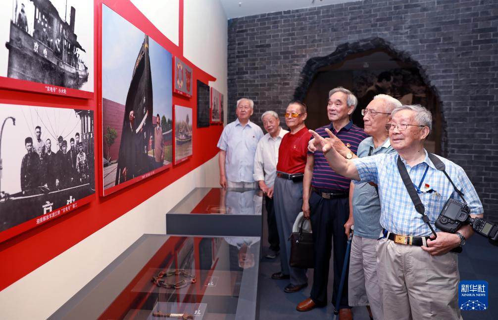2019年7月4日,在南京渡江胜利纪念馆,王生(右一)与南钢离休老干部参观史料陈列展,庆祝新中国成立70周年。