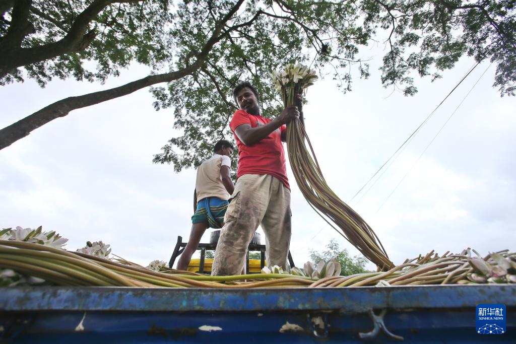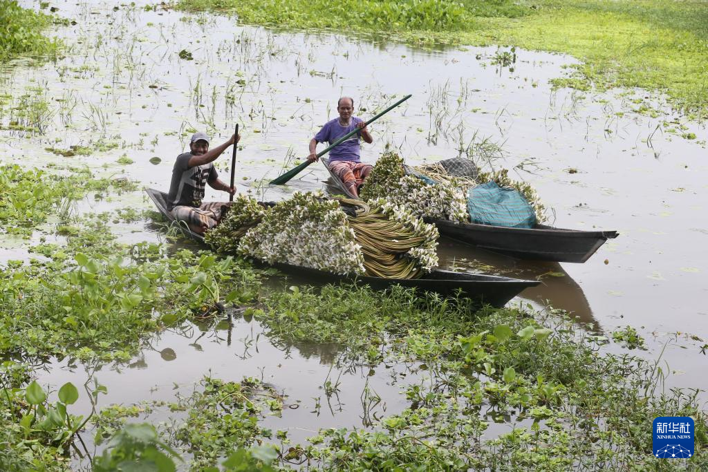 睡莲是孟加拉国的国花,不仅花开美丽,也是当地的特色食材,目前正值采摘季节。
