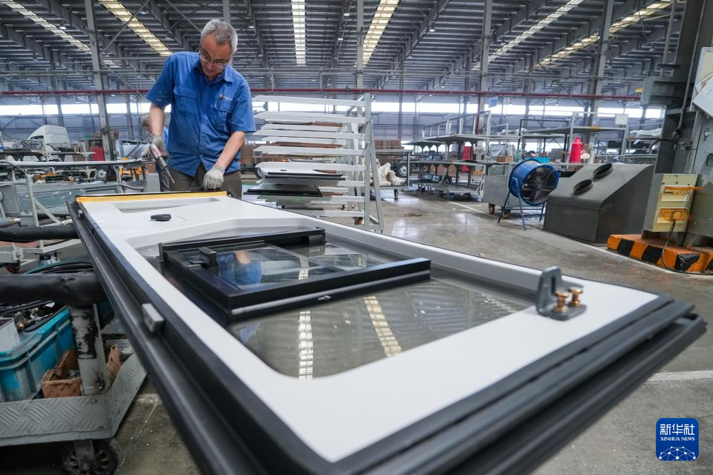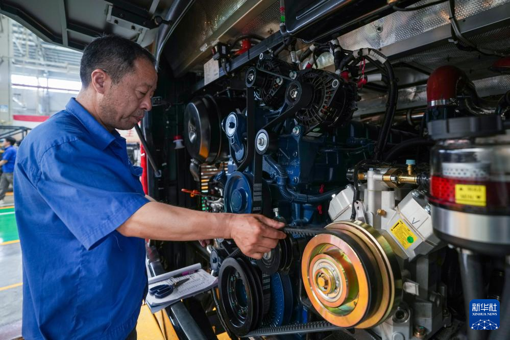 5月22日,工人在江苏扬州亚星客车总装车间内作业。